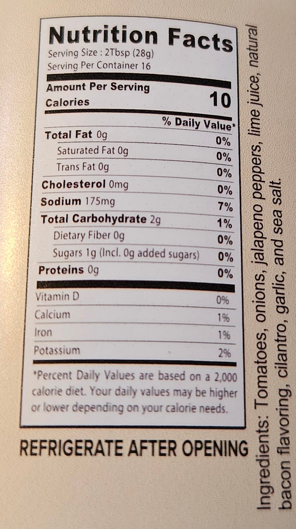 Tomato, Onion, Jalapeno Pepper, Lime, Bacon, Cilantro, Garlic