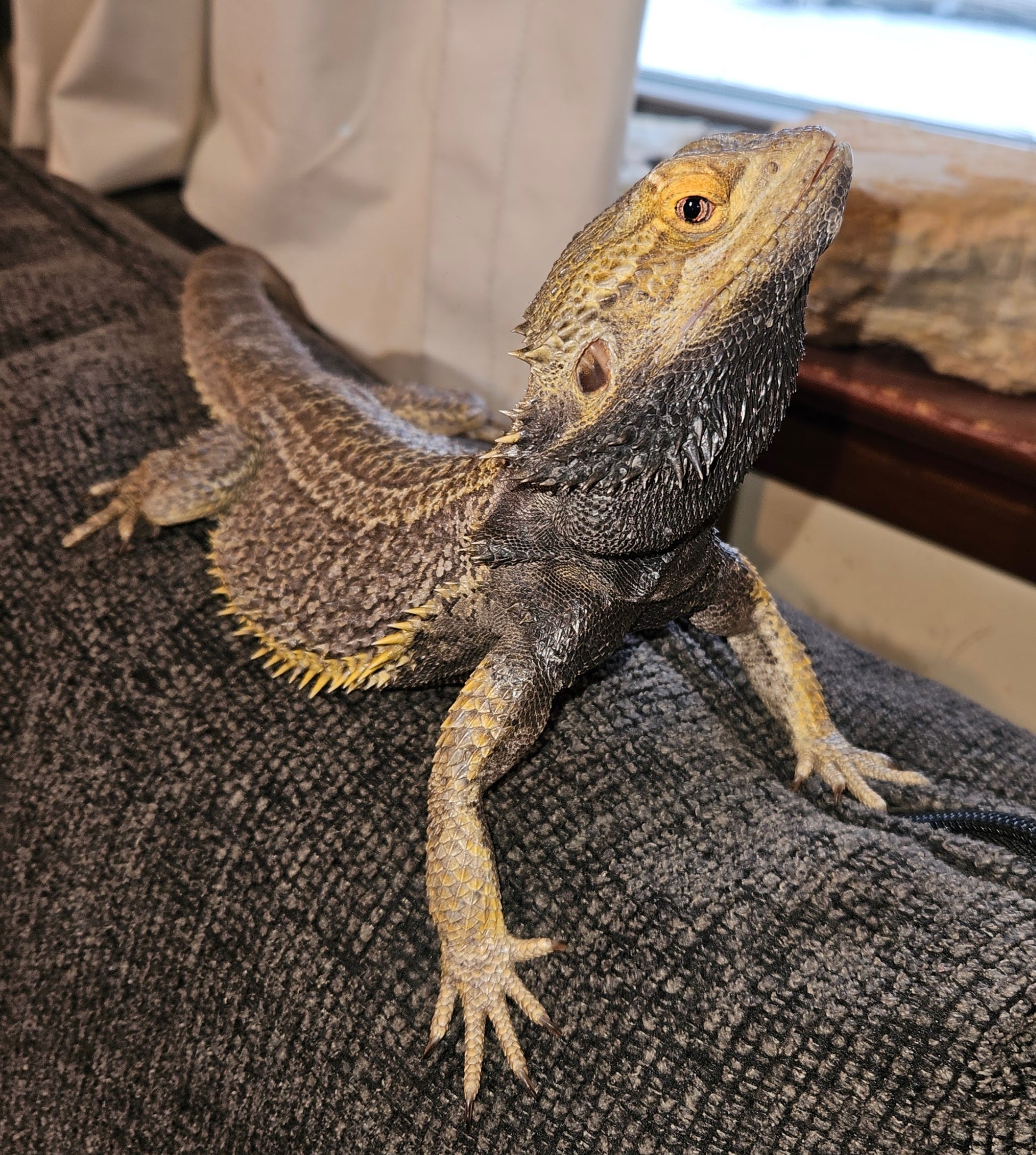 Sammy is a Bearded Dragon. He doesn't need anything. He doesn't have a cage because he runs loose in the house. He doesn't have a basking light because he sits in the window. He doesn't have decor because the whole house is his decor. But, if you donate to Sammy, he will buy nice things for his girlfriends, Mazley and Lemon Drop.